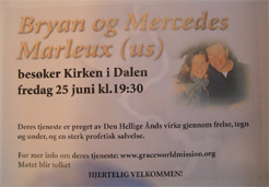 Gamleby, Bro, Norrkoping, Stockholm, Nynashamn and Hammarsby. Then, while on an overnight ferry going from Sweden to minister in Latvia, where we were stuck without a cabin to sleep in, we had a divine appointment with some Norwegians who have since become good friends. Since then we have also ministered in Norway in Oslo, Mysen, Troekstad, Rakkestad, Kvinesdahl, Lista, Farsund, Hammar, Kristiansand and other places there too. |