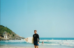 the beach in Portugal after a great surf at a spot called Lagide. We've