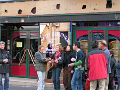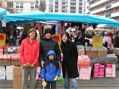 In front of the Church of Saint Martin of Tours, who always encouraged evangelism. Above: Mercedes and Patrick standing with Celine who received Christ and then helped on the streets with evangelism, and Leticia the pastors daughter, in an Islamic district of Tours. Right: Reaching out with the Gospel on the walking streets of Tours, France. |
