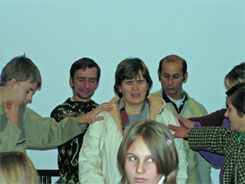 in the Power of the Spirit." Middle and Right: The Holy Spirit moves in power, touching hearts deeply while praying for people during the meetings we held in Romania. |