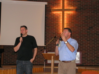 near the end, some even with tears in their eyes. Six men made decisions to receive Christ and many others had eternal seeds planted in their hearts as we preached and prayed for them. Some young Muslim men came up and talked with us afterwards and we were able to share the reality of who Christ is with them also, and some, who were visibly touched by our testimonies, had tears in their eyes. We next ministered in Mysen, where a young Muslim woman who had just recently come to Christ was also radically touched, knocked to the ground by the Spirit and deeply ministered to as we prayed for her. Many others were powerfully ministered to, amongst them another new Christian who was filled with the Spirit for the first time, as we ministered in the church and at a home meeting there. We shared a testimony at a church in Kristiansand, which ended up becoming a major divine appointment. A guy there had been resisting God’s call to ministry but had come to the point where he knew it was time to turn around. He said he had been waiting for some months for the right person to come to his church so he could be prayed for and when I finished speaking he said he made a beeline to the front. When I finally got to come over and pray for him, it looked like he had been struck by 10,000 volts of electricity, as he was knocked to the ground shaking. He shared how he had a vision of being placed under a waterfall and being cleansed and anointed for God’s call to ministry. A Mid-Summer party in Kristiansand turned into a spontaneous home meeting later, where the Spirit of God moved gloriously and another young Muslim woman who had recently been saved was powerfully touched as were many others, by the presence of the Holy Spirit, who turned the party into a Holy Ghost happening time. |