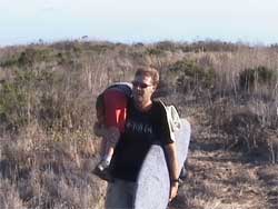 ![]() ![]() Hiking along the Central Coast, this trail here was 12 miles round trip and included a 1640 foot ascent and descent over a small mountain. Here Bryan is carrying Patrick amongst other “things” up an extremely steep ascent, straight uphill. Definitely felt like we were living out the Scripture: “I beat my body and make it my slave.” |
