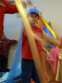other kids worshipping the Lord with flags. |