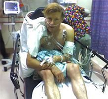 and groaned in agony. He told Patrick: "Keep your hand on your dad