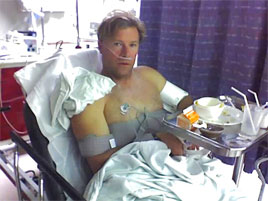 THERE IS A SEASON... We've had a bit of a schedule change lately and have had to temporarily put on hold some possible mission trips, because of a recent mishap: Surfing is much easier on the body when you fall than its poor red-headed step child skateboarding; cement is merciless. After a string of injuries back in the day I hung up the skateboard until Patrick got into it recently. One little rock can ruin your day though, I hit one just cruising and going straight doing basically nothing. You'd think it would have happened while I was hitting vertical in the pool right before this at the skate park we were at, it started to feel like the old days, but then... That little pebble catapulted me like a crash-test dummy straight into a dislocated shoulder, the real problem was the way I landed with my arm up in the air, usually I'm ready to tuck and roll, it's when your guard is down that you get broadsided. The doc at the emergency room, where I spent 6 long fun-filled hours, said it's one of the most painful injuries there is; pure agony is how I'd put it. After being shot up like a pin cushion with numerous painkillers, they finally had to knock me out to reset it. Now it's ice, rest, then rehab. Keep us in your prayers for a full and speedy recovery without complications and consider us in your giving as we've got lot's of extra expenses with deductibles and co-pays to pay off due to limited insurance. |
