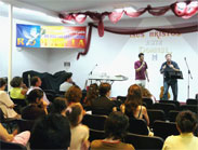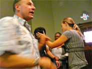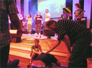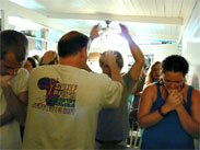 Bryan ministering at North Shore Christian Surfers meeting, Bryan experiencing