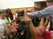 Mercedes praying at a meeting at USC- we've had some powerful meetings